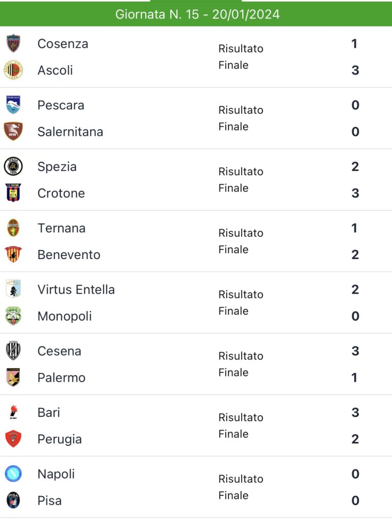 Note. Ammoniti Peluso, De Luca, Parisi, Raggioli, Baldacci, Bartolini, Ferrari. Recupero 0′ pt; 5′ st.