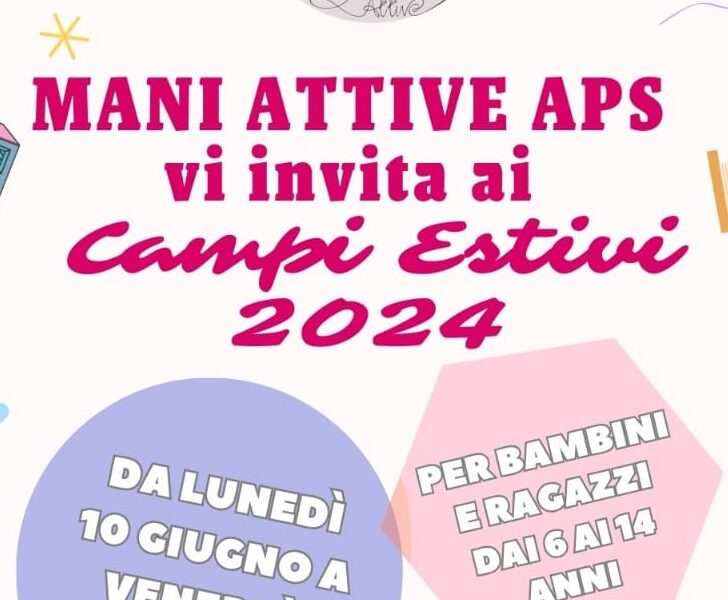 PISA – Al via i campi estivi organizzati dall’Associazione Mani Attive APSA, le sessioni saranno due e andranno dal 10 Giugno al 2 Agosto e dal 2 al 13 Settembre presso il grande parco della RSA Remaggi in Via Tosco Romagnola a Titignano (Cascina).