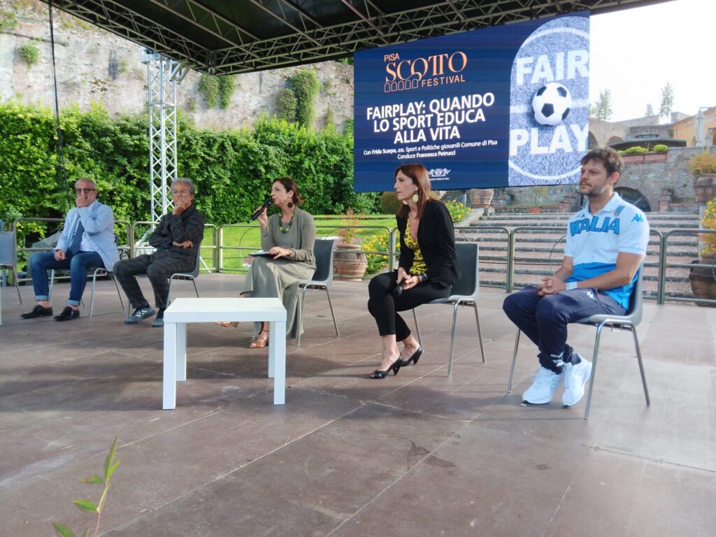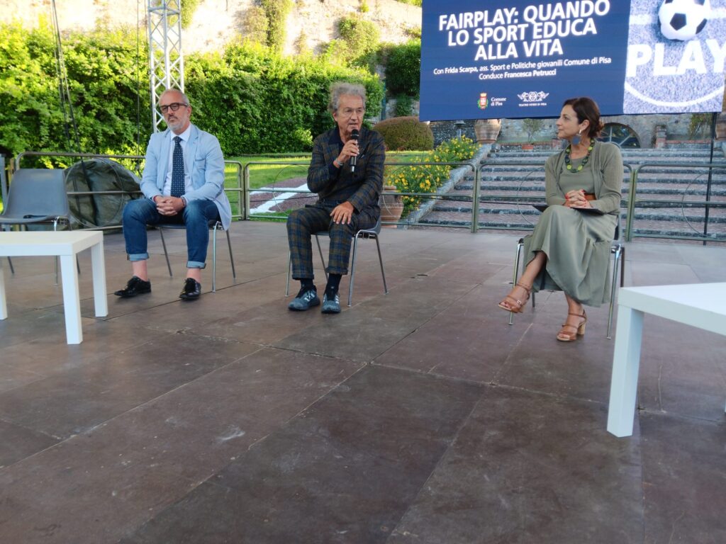 PISA – Mercoledì 12 giugno 2004 grande successo al Giardino Scotto in occasione dell’incontro sul tema “Fair Play quando lo Sport educa alla vita” svoltosi nell’ambito del cartellone del “PisaScotto Festival“.