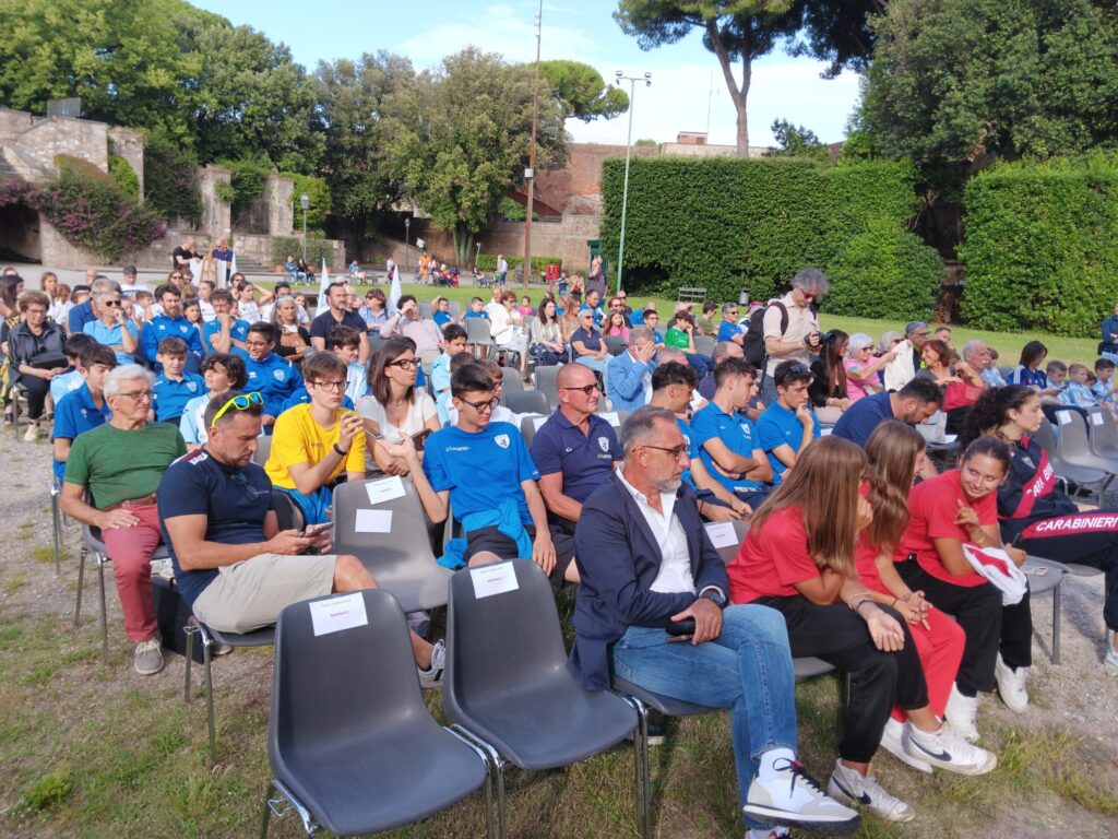 Sul palco il Presidente del Pisa Calcio Giuseppe Corrado, il Vice Presidente dell’Associazione CFPT – Calcio Fair Play Toscana Andrea Vaglini e di Matteo Betti, atleta paralimpico in procinto di prendere parte alle prossime Paralimpiadi di Parigi, che rappresentano per lui la quarta partecipazione ai Giochi.
