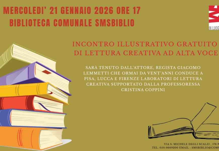 PISA – La Biblioteca comunale SMSBiblio ospita un incontro illustrativo gratuito sulla lettura creativa ad alta voce, aperto a un pubblico di tutte le età: studenti, aspiranti scrittori, appassionati di lettura e pensionati.