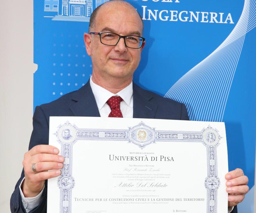 PISA- È Attilio Del Soldato il primo laureato del Corso di Laurea professionalizzante in Tecniche per le Costruzioni Civili e la Gestione del Territorio dell’Università di Pisa. Nato a Lucca nel 1967, Del Soldato è iscritto al Collegio dei Geometri della Provincia di Lucca e lavora come istruttore tecnico presso il Comune di Capannori.