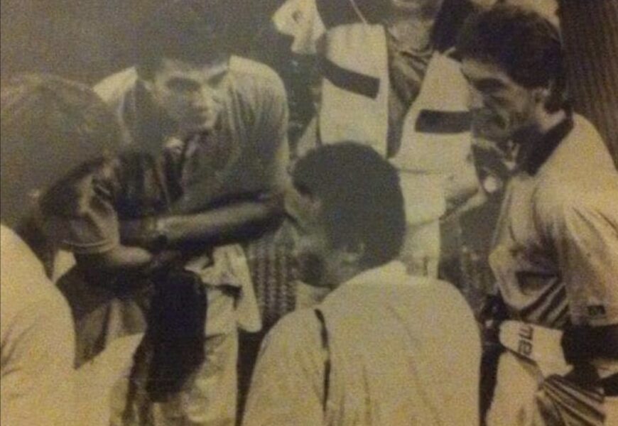 Erano gli anni che il nostro “Schiaccia”, dipendente della società guidata dal presidentissimo Romeo Anconetani, seguiva il Pisa in qualsiasi angolo della penisola e comunque aveva già la passione per la scrittura, prima collaborando ad un giornalino stampato dalla Curva Nord (da ricordare le sue interviste ai calciatori del tempo, Faccenda, Ipsaro, Cuoghi, Caneo, per citarne alcuni, oppure all’allora presidente del Livorno Enrico Fernandez Africano, intervistato direttamente presso i suoi uffici in zona Attias) e poi con il Nerazzurro scrivendo poesie in vernacolo pisano.