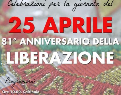 CALCINAIA – Il Comune di Calcinaia celebra sabato 25 aprile l’81° Anniversario della Liberazione d’Italia con un programma...