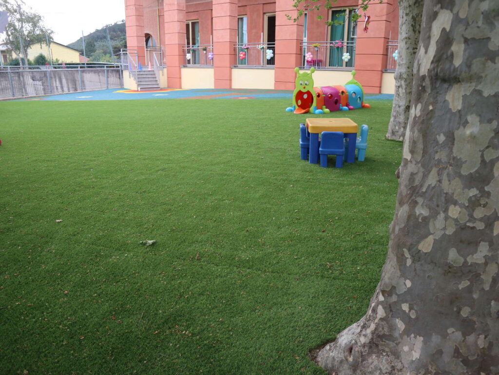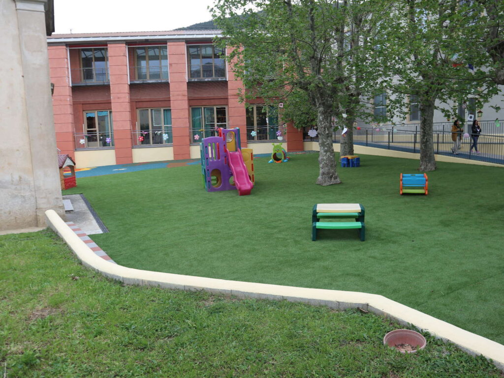 L’area interessata, di circa 470 metri quadrati, è stata completamente rinnovata: circa 300 metri quadrati sono stati coperti con erba sintetica, mentre altri 125 sono stati destinati a un’area giochi in gomma colata antitrauma. In precedenza erano già stati effettuati interventi di sistemazione del terreno e di miglioramento del sistema di drenaggio, con nuove canalette e tombini per la gestione delle acque piovane.