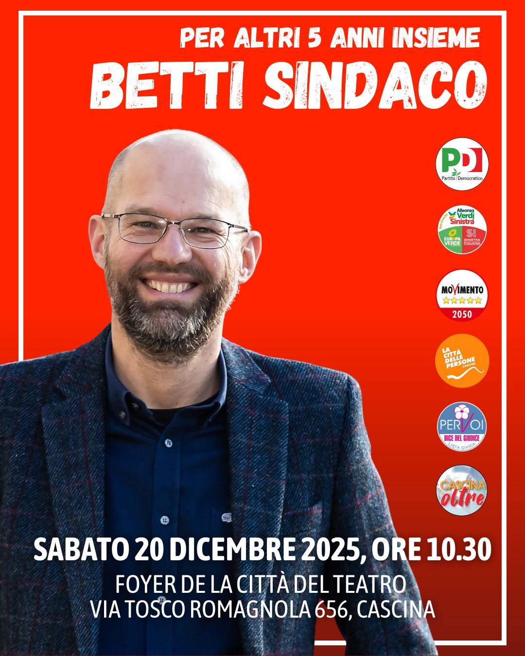 La coalizione di centro sinistra ufficializza sabato 20 dicembre la candidatura a Sindaco di Michelangelo Betti