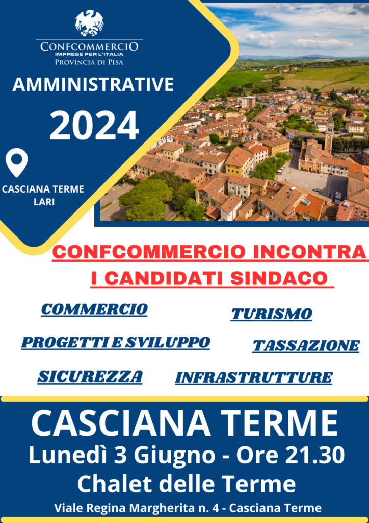 “Ringraziamo tutti i candidati sindaco dei comuni di Capannoli e Casciana Terme Lari per la disponibilità dimostrata e nient’affatto scontata, l’impegno e la dedizione messi al servizio delle rispettive comunità” afferma il direttore di Confcommercio Provincia di Pisa Federico Pieragnoli, che sarà il moderatore dei due confronti in programma lunedì 3. “Come associazione abbiamo accolto molto positivamente l’invito ad organizzare un confronto prima delle elezioni in due comuni molto importanti per il nostro territorio. Un importante momento per informarsi e scegliere consapevolmente. Ci mettiamo in ascolto attento di quello che avranno da dire i candidati sindaco su temi come il commercio e turismo, valorizzazione del territorio, infrastrutture e sicurezza, tassazione e piccole e medie imprese, e su argomenti specifici come la valorizzazione turistica di Capannoli e Santo Pietro Belvedere o il rilancio delle Terme di Casciana”.