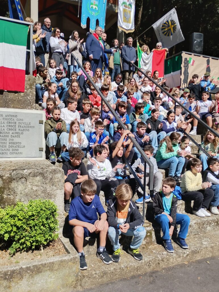 Succede anche questo il giorno della Festa della Liberazione davanti al Sacrario che ricorda l’eccidio nazista dell’agosto 1944. Che siano le bambine e i bambini a indicare la strada. Non solo Matteo e i suoi compagni, anche gli alunni delle quinte elementari degli Istituti comprensivi “Niccolini” e “Gereschi” che nei mesi scorsi hanno studiato Livia Gereschi, Carla Guelfi, Licia Rosati e Mirella Vernizzi, donne e figure di primo piano della lotta partigiana sul Monte Pisano. E che, alla fine, seduti sulla scalinata, intonano “Bella Ciao”, insieme alle autorità, ai genitori e agli insegnanti.