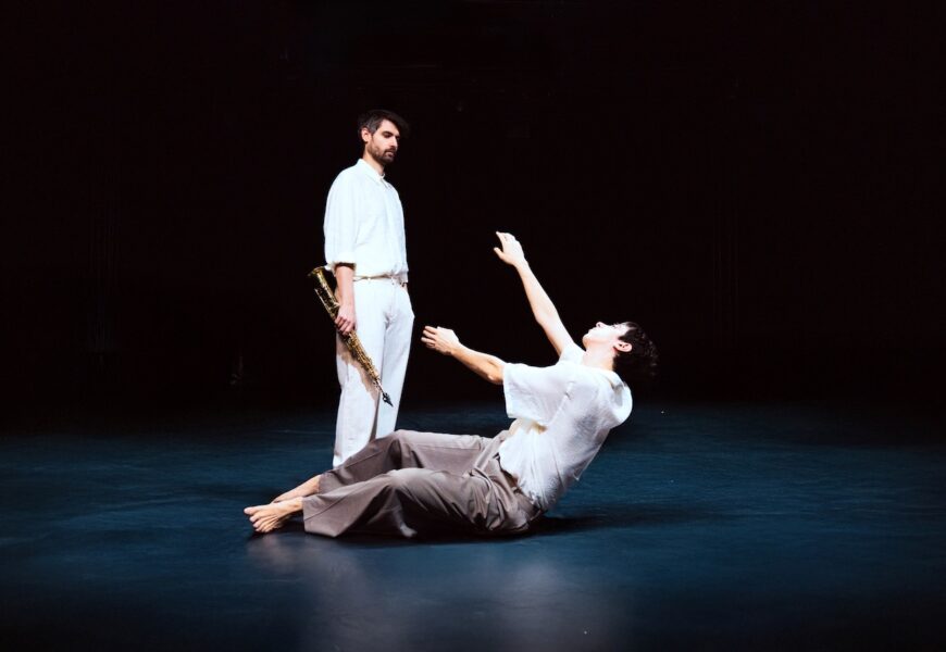 Segue “White” della compagnia tedesca Arcis Collective, produzione firmata dalla coreografa Roberta Pisu, con in scena il danzatore Cristian Cucco e il musicista Claus Hierluksch (sassofono soprano) su musiche originali di Leonhard Kuhn. Lo spettacolo indaga la nascita del gesto creativo nella sua fragilità e complessità: corpo e suono dialogano in un equilibrio delicato tra attrazione e resistenza, ascolto e affermazione di sé, dove danza e musica si rincorrono senza seguire o accompagnarsi reciprocamente.