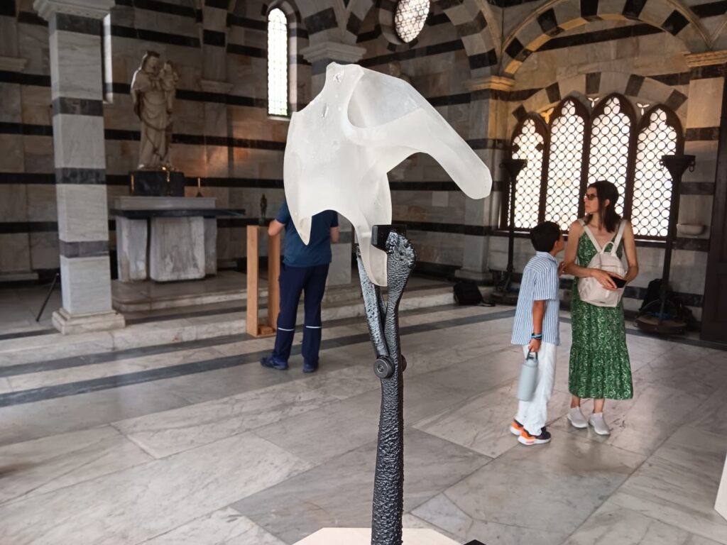 Due le sedi espositive principali: la Chiesa di Santa Maria della Spina, eretta nel 1230 per conservare una delle spine della corona di Cristo, e il Fortilizio con la Torre Guelfa, dalla cui cima si può godere di uno dei più straordinari panorami di tutta Pisa. Quattro le sculture che saranno collocate in esterno, in un percorso che attraversa la storia della città: a partire da via Duomo, nel contesto di piazza dei Miracoli, posizione d’onore che solo pochi artisti contemporanei hanno avuto il privilegio di conquistare. Le altre opere saranno collocate in via Pietro Toselli, davanti a Palazzo Blu, dimora storica e centro d’arte, Lungarno Gambacorti, di fronte alla Chiesa di Santa Maria della Spina, Lungarno Ranieri Simonelli, nello spazio antistante alla Torre Guelfa.
