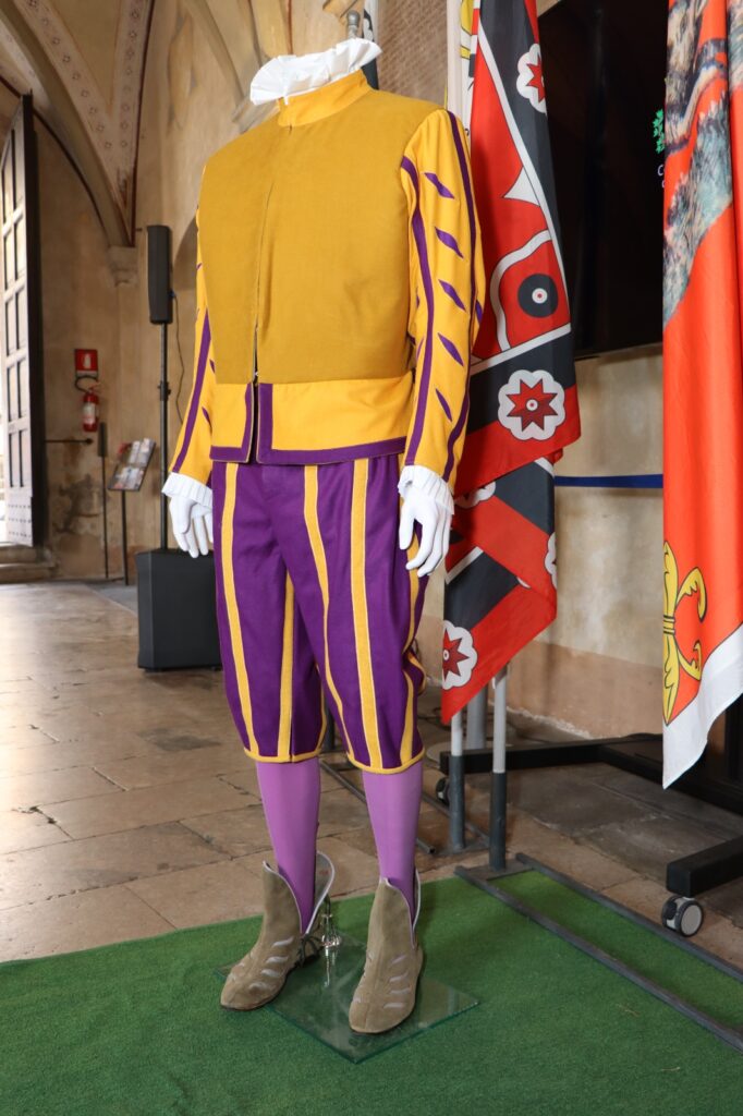 “I costumi sono stati realizzati dall’atelier Nicolao di Venezia e molti di questi progettati con accorgimenti che ne consentono la versatilità nelle taglie: partono da una misura base ma sono estendibili, così da poter essere utilizzati da persone con taglie diverse. Sono stati inoltre acquistati gli elementi di complemento – come calzature e accessori – per rendere completa ogni dotazione. I costumi delle Guardie al Campo con Corazza versavano in condizioni disastrose, perché la corazza provoca una grande usura del tessuto sottostante. Per questo i nuovi abiti sono stati studiati con rinforzi nei punti di contatto tra corazza e tessuto. Questo intervento rappresenta la spinta decisiva per concludere il lungo lavoro sui costumi. Siamo ormai molto vicini all’obiettivo finale e, nei prossimi due anni, completeremo definitivamente l’ambizioso programma“.