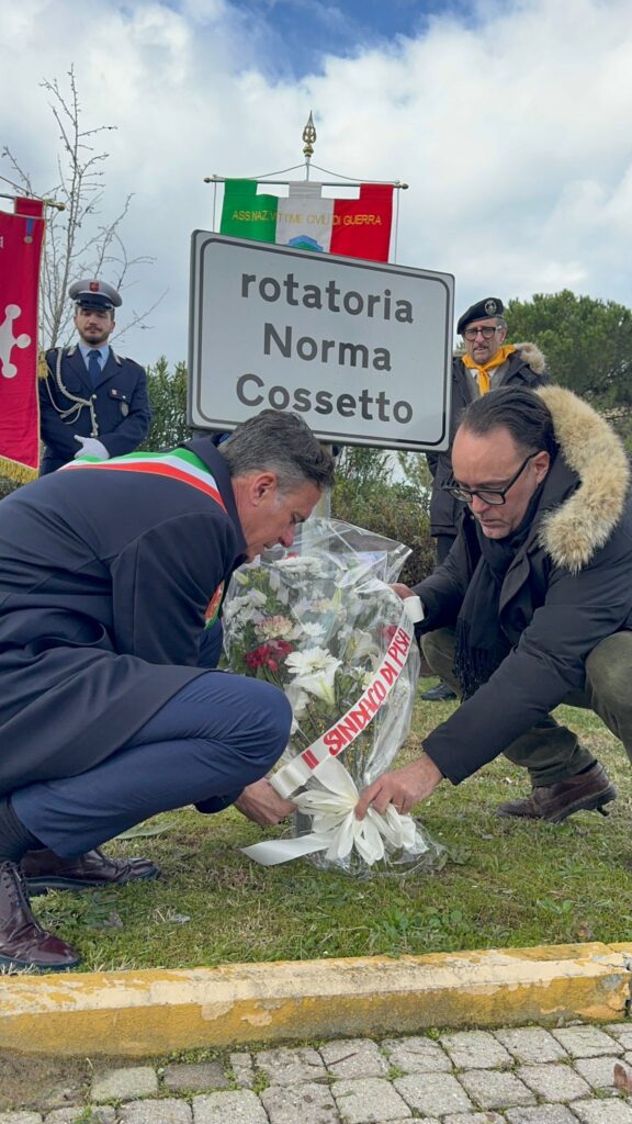 Il programma della giornata. La mattinata si è aperta con la deposizione di una corona d’alloro al Cippo dedicato alle vittime delle foibe e agli esuli giuliano-dalmati, presso il cimitero suburbano di Pisa, seguita dalla Santa Messa e dalla commemorazione ai caduti. Alle 11.45, a Marina di Pisa, è stata deposta una corona d’alloro al Cippo Martiri delle foibe in via Milazzo. Le commemorazioni sono continuate con la deposizione di mazzi di fiori alla rotatoria “Martiri delle foibe” (intersezione via Lucchese e del Brennero), alle ore 12.15, e alla rotatoria “Norma Cossetto” (intersezione via Cisanello e Maccatella), alle ore 12.45. Alle 16.00 l’inaugurazione della panchina tricolore dedicata alla commemorazione delle vittime, situata presso la Cittadella galileiana.