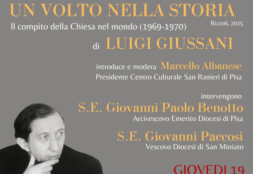 PISA- Durante l’udienza in piazza San Pietro al movimento di Comunione e Liberazione del 15 Ottobre 2022, Papa Francesco ha affermato: “La potenzialità del vostro carisma è ancora in gran parte da scoprire, ancora c’è gran parte da scoprire”. Il Papa, sempre in quel discorso, aveva tratteggiato efficacemente alcuni elementi della personalità e dell’opera di mons. Luigi Giussani. L’incontro organizzato dal Centro Culturale San Ranieri il giorno giovedì 19 Febbraio alle ore 21:15 presso l’Auditorium dell’Opera Primaziale di Pisa si propone di essere un contributo alla “scoperta” di quel carisma, con l’aiuto di S.E. Mons. Giovanni Paolo Benotto, Arcivescovo Emerito di Pisa e di S.E. Mons. Giovanni Paccosi, Vescovo di San Miniato.