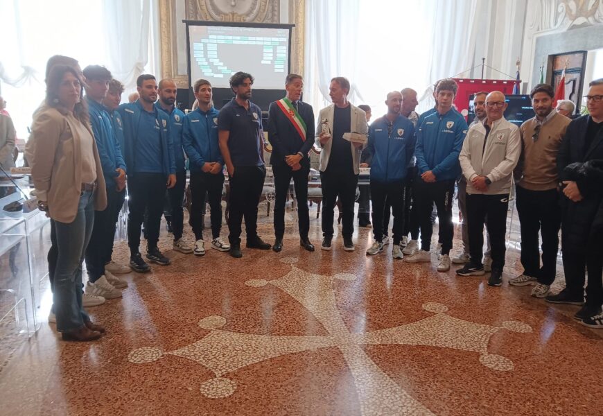 PISA – A cinque mesi esatti dalla cerimonia in cui in Sala delle Baleari venne festeggiata la Promozione in Serie A del Pisa Sporting Club, il Lenergy nel pomeriggio di giovedì 16 ottobre ha aperto nuovamente la Sala delle Baleari per analoga premiazione in favore del Lenergy Pisa Beach Soccer che lo scorso 9 agosto a Cirò Marina ha conquistato il suo terzo titolo di Campione d’Italia superando 2-1 il Catania in finale.