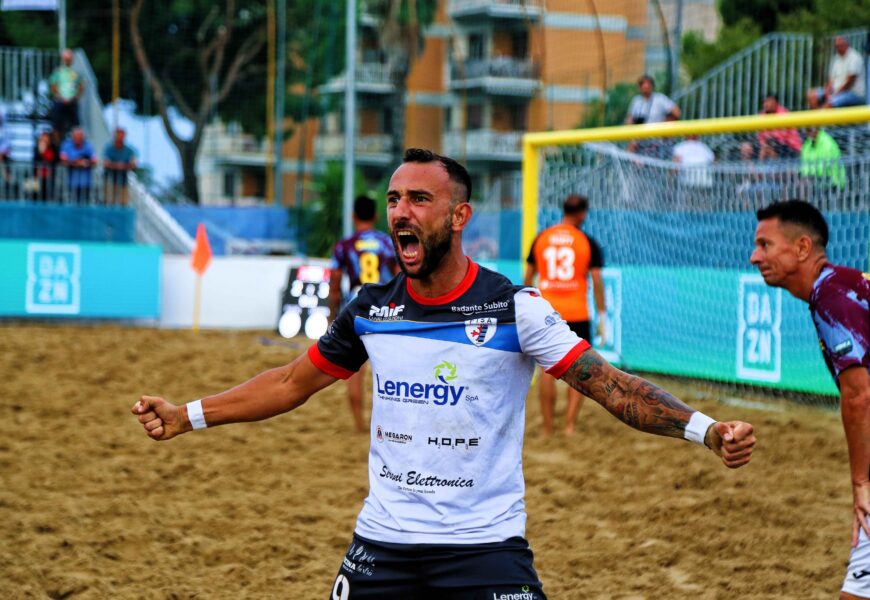 Il pre-partita è infatti segnato la maltempo, che costringe la disputa delle semifinali maschili al posticipo, con la gara dei nerazzurri riprogrammata per le ore 19. Finalmente in campo, la squadra di Matteo Marrucci chiude in vantaggio il primo periodo grazie alla rete di un trascinante Barsotti, autore del secondo poker nell’arco di due giorni. L’FVG ribalta il parziale nel secondo tempo con Coppola e Hodel, ma il pareggio di Ott è immediato e Barsotti riporta in vantaggio il Lenergy Pisa con due reti entro lo scadere. Il terzo periodo si apre con la doppietta di Hulk inframezzata dal centro di Hodel, quindi ancora Hulk risponde alla rete di Spacca su calcio d’inizio, dopodiché Barsotti fa eco al gol di Schirinzi. 5-8 recita il tabellone a fine gara, Lenergy Pisa torna in finale di Campionato e lo farà domenica alle ore 18 contro la vincente del derby di Catania, con diretta streaming DAZN e il racconto in diretta della gara su Punto Radio. Dopo quella di Euro Winners Cup, per capitan Stefano Marinai e compagni sarà la seconda finale di stagione, l’ultimo impegno e soprattutto un nuovo prestigiosissimo appuntamento per riportare Pisa sulla vetta del beach soccer italiano e per far sognare una città intera.