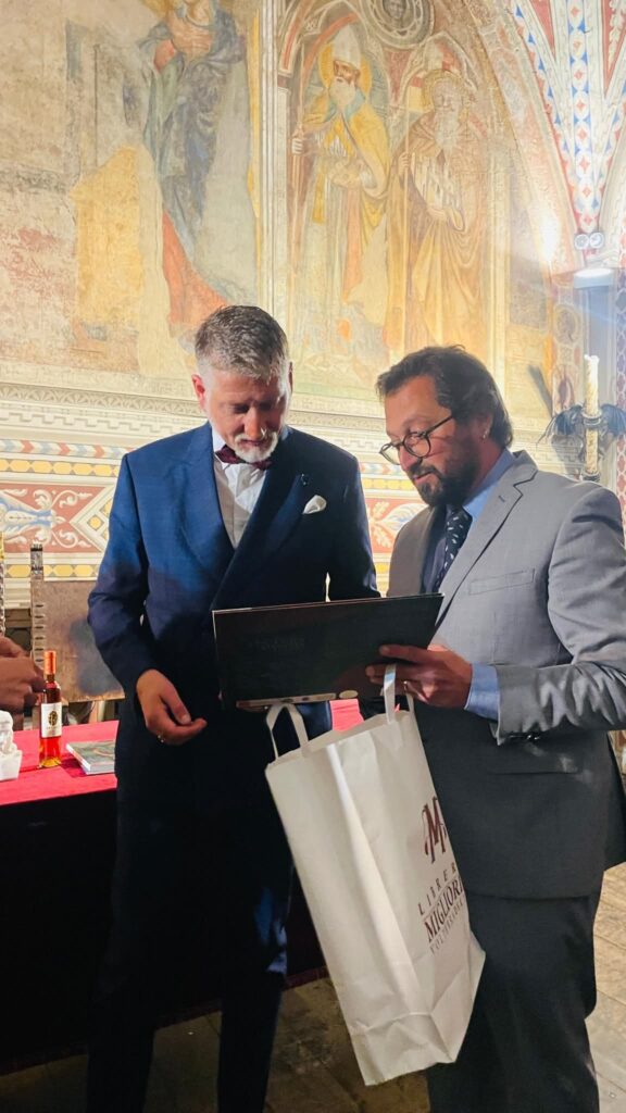 Nel corso della visita, il sindaco Arcenni ha donato al Ministro un volume sulla storia degli etruschi a Terricciola insieme a prodotti tipici locali, mentre Pedro Bessi ha consegnato alcune opere in alabastro, sottolineando la necessità di sostenere questa tradizione artigianale unica al mondo, parte integrante dell’identità culturale ed economica della città.