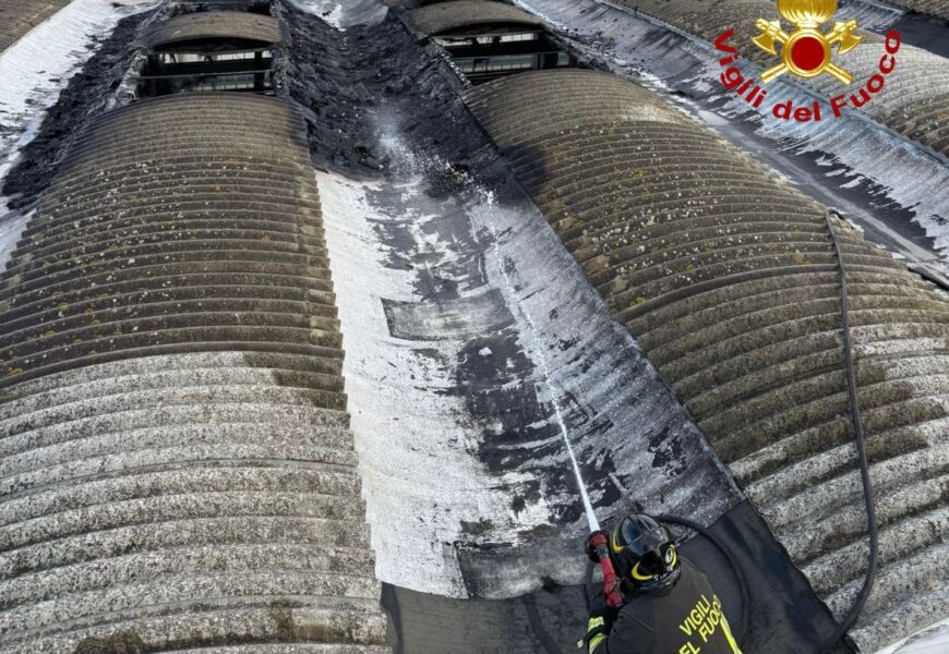 Durante la fase di manutenzione della copertura di un tetto presso un una fabbrica metalmeccanica si é sviluppato un incendio di una porzione del tetto stesso.
