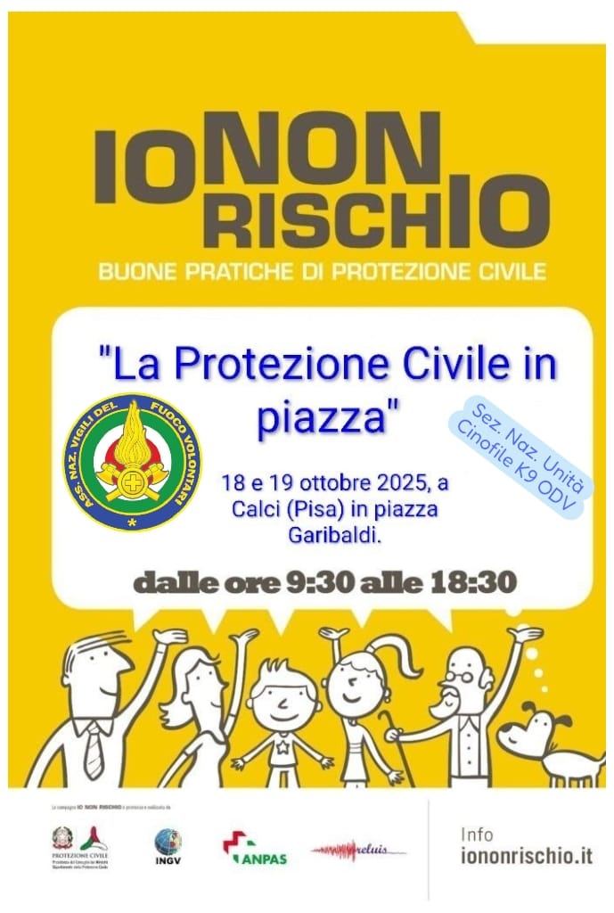 Inoltre, sia sabato sia domenica tutti i partecipanti alla Sagra avranno la possibilità di visitare anche gli stand di “Io non rischio”, la campagna nazionale per la diffusione della cultura della prevenzione e delle buone pratiche di protezione civile. In piazza Garibaldi saranno presenti i volontari dell’Associazione Nazionale VVF Volontari Unità Cinofile K9 Odv, a disposizione per parlare dei rischi naturali e antropici che interessano il territorio e per dare informazioni sulle buone pratiche da adottare per ridurne gli effetti. In esposizione anche alcuni mezzi dell’antincendio boschivo locale.