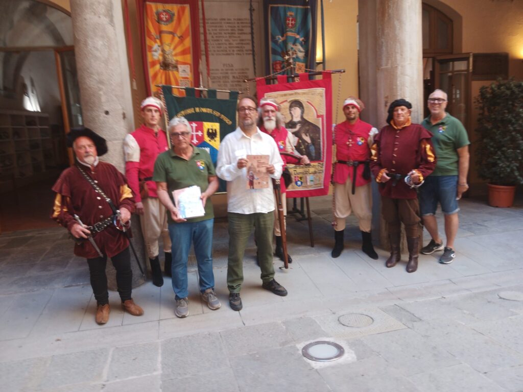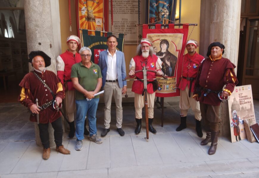 PISA – Per la prima volta nella storia di una rassegna inaugurata nel 1965 a Gubbio, tocca a Pisa ospitare la 57esima edizione del “Torneo Nazionale della Balestra antica” e lo fa scegliendo come scenario la splendida location di Piazza del Duomo dove, sabato prossimo 20 Luglio dove si sfideranno cinque compagnie, il cui programma è stato illustrato martedì 16 luglio alla presenza dell’Assessore alle tradizioni della storia e dell’identità di Pisa, Filippo Bedini, di Cristiano Scarpellini, presidente Balestrieri di Porta San Marco e di, Renzo Ciangherotti, Segretario Balestrieri di Porta san Marco.