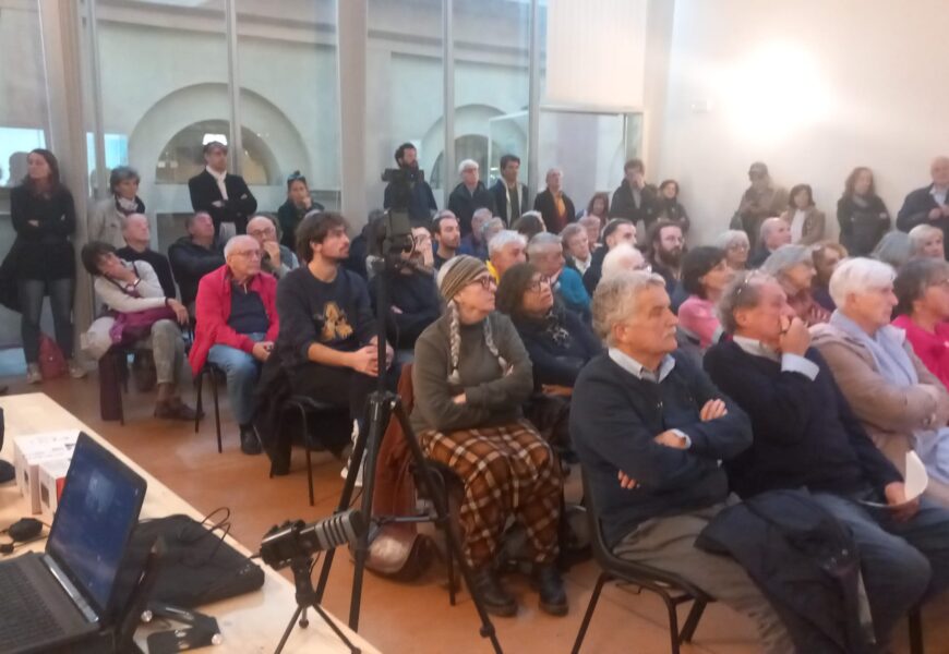 PISA – Pienissima la sala, ragazzi seduti per terra, persone costrette a rimanere fuori dalla sala a seguire l’iniziativa in diretta Facebook, silenzio partecipato e consapevole: è in gioco il parco e il suo destino, ed è in gioco il clima, perché l’abbattimento di una foresta peggiorerà la situazione. Ma tutti esplodono in un applauso interminabile quando, in video, Pierluigi Cervellati, l’ora novantenne estensore del primo piano del parco che ne disegnò con lungimiranza confini e funzioni, scandisce: “Lorenzo Bani si deve dimettere. Non conosce il suo parco, non ha la coscienza del danno che si infligge abbattendo 10mila alberi”.