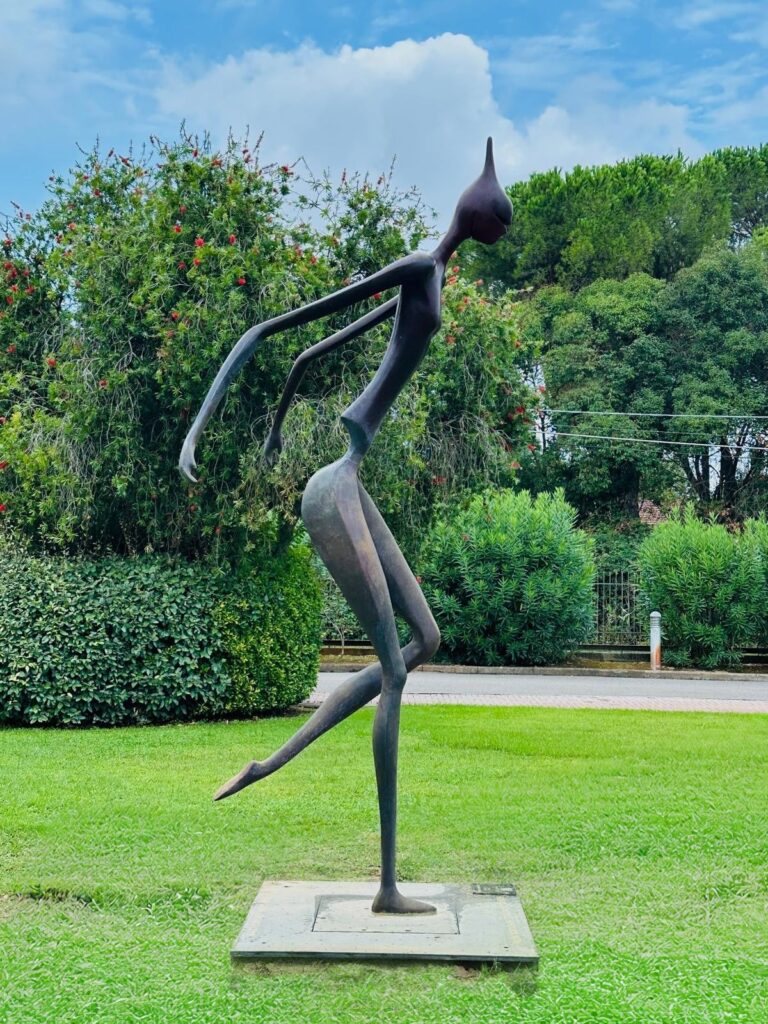 Ma chi è Hydra, e perché quest’opera? Hydra è una figura femminile, una danzatrice, un invito a prendere la vita con più leggerezza, è una delle figure il cui tema parte da una ricerca sull’Africa e sull’acqua dell’artista. Questa figura ieratica, sottile, solenne, rappresenta la fluidità intesa come un tributo al movimento, una sfida all’equilibrio. Equilibrio e movimento che sono i binari della mobilità, del non fermarsi, del continuare, proseguire, perseverare.