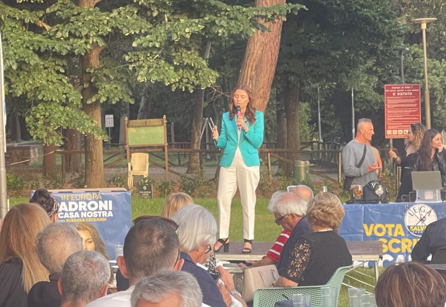 PISA – L’europarlamentare Susanna Ceccardi chiude allo Chalet Salvini sul Viale delle Piagge a Pisa la campagna elettorale per le europee in programma sabato 8 e domenica 9 giugno. Una serata vissuta tra abbracci e strette di mano, che ha visto protagonisti la Lega e tutti i suoi simpatizzanti, che si sono stretti attorno alla propria Leonessa che cerca la riconferma attraverso la prossima tornata sui banchi di Bruxelles.