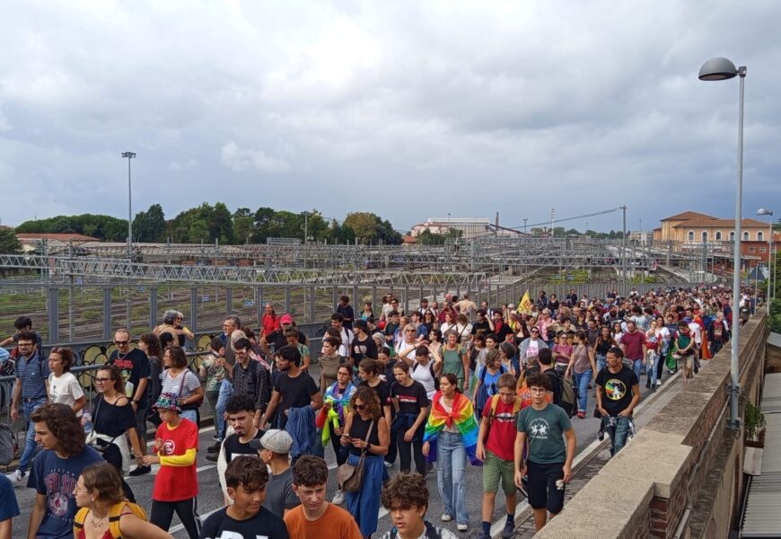 PISA – Migliaia di persone sono scese in piazza lunedì 22 settembre a Pisa per aderire allo sciopero nazionale in solidarietà con Gaza, promosso dal sindacato di base USB e sostenuto da CUB, ADL, SGB e altre sigle del sindacalismo conflittuale.