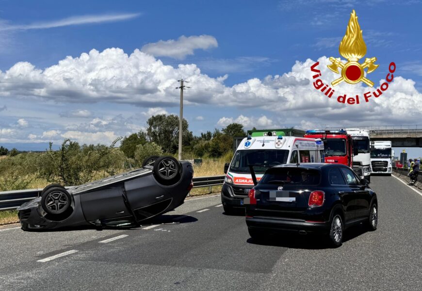 Un’auto ha perso il controllo capovolgendosi e andando a coinvolgere un’altra auto. Il personale dei Vigili del Fuoco ha messo in sicurezza le auto coinvolte nel sinistro e collaborato con gli altri enti intervenuti. Sul posto Polizia Stradale e 118.