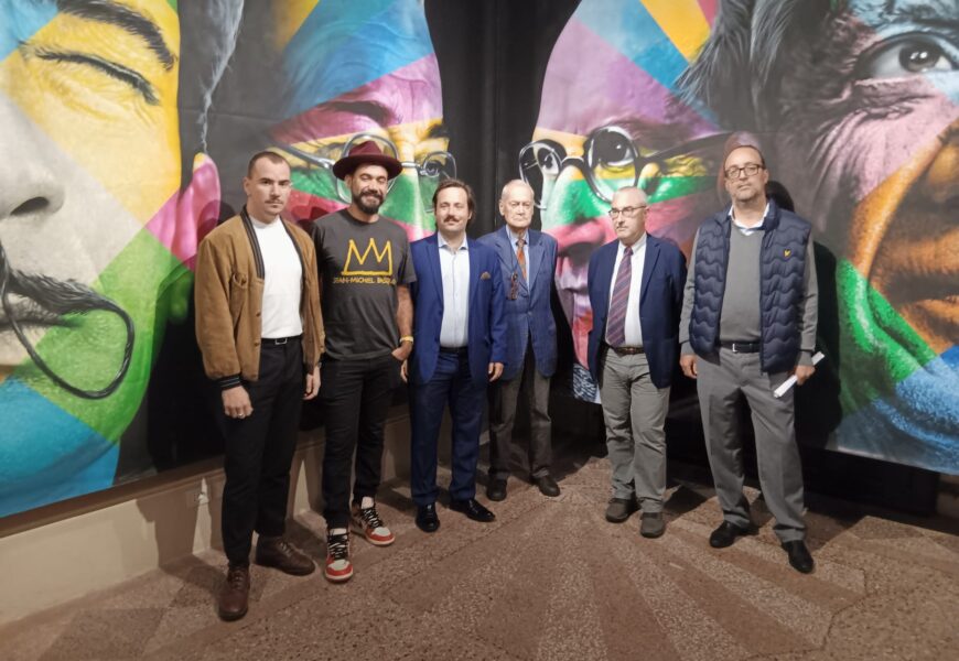 Nel prendere la parola, il Curatore Gian Guido Grassi ha tenuto a sottolineare: “È ormai dal 2017 che l’Associazione “Start Attitude” sta portando avanti un lavoro sulla città di Pisa, dove abbiamo individuato un Quartiere quale quello di Porta a Mare dove stiamo creando delle opere, così che è nostra intenzione proseguire in questo senso grazie alla collaborazione con artisti di livello internazionale e la cui Arte è oramai entrata nel grandi Musei, ragion per cui questo dialogo fra un luogo in parte periferico ed i più famosi Palazzi del Centro Storico è particolarmente significativo. Ogni artista – conclude Grassi – lavora sul tema delle “Avanguardie”, in particolare Kobra con i ritratti e la rivisitazione delle opere degli avanguardisti, Borondo prendendo spunto dal Crocifisso a rappresentare la passione e la tragedia che si è vissuta all’inizio del ‘900 e che in parte è simile a quella attuale, a dimostrazione di come l’Arte possa salvarci da questa situazione, mentre l’ultima parte è dedicata alla Bauhaus, ovvero quella dell’Arte applicata che evidenzia come la stessa entri nella quotidianità con tanti oggetti ed utilizzi che sono legati al design“.