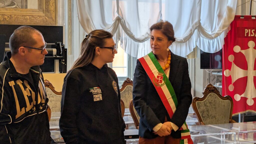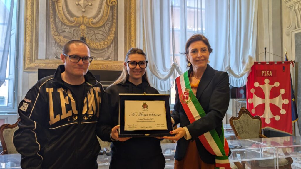 La cerimonia si è svolta martedì 21 aprile nella Sala delle Baleari di Palazzo Gambacorti, dove l’assessore allo sport Frida Scarpa ha consegnato all’atleta una targa di riconoscimento per i risultati ottenuti e per il prestigio portato alla città. Presenti anche il padre e allenatore Alessio Schiavi e il consigliere comunale Giovanni Pasqualino.