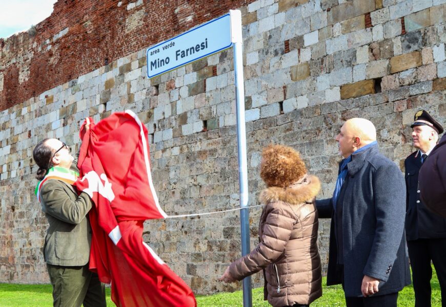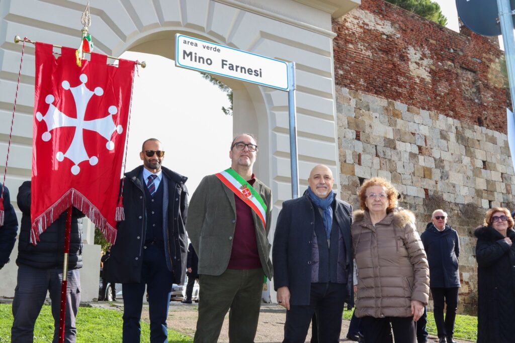 PISA – Si è svolta giovedì 29 gennaio, la cerimonia di intitolazione a Flaminio Farnesi, detto Mino, dell’area verde a ridosso delle Mura urbane che costeggia via Bonanno Pisano. All’iniziativa hanno partecipato il vicesindaco di Pisa Filippo Bedini, l’assessore alla toponomastica e ai servizi demografici Amanuel Sikera e Bruno Farnesi, figlio di Mino, in rappresentanza della famiglia.