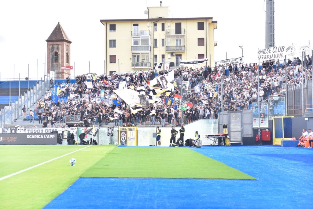 IL PRIMO TEMPO. Nel pre-gara solita atmosfera di gran tifo con l’inno di Bocelli che precedeva “Dalla Cittadella fino al Mar” e l’Inno della serie A. Sono 1.100 i sostenitori friulani sistemati in Curva Sud. Pisa in maglia nerazzurra, Udinese in completo grigio argento. Gara molto vivace fin dall’avvio. I nerazzurri al 2′ hanno subito una grande occasione con Meister che sfrutta un incertezza del portiere Sava, ma calcia incredibilmente sull’esterno della rete. Che peccato per questa occasione fallita. La risposta dell’Udinese però non si fa attendere e Davis con il sinistro su invito di Kamara da sinistra calcia sull’esterno della rete. Il Pisa si getta in avanti conquista due corner senza esito. Sulla ripartenza del secondo angolo Caracciolo spende il giallo. Alla prima azione però l’Udinese passa, con un incursione centrale, dove Bravo sfrutta un rimpallo in area e fa secco Semper: 0-1. Nerazzurri sotto al 14′. Poco dopo altra leggerezza difensiva che innesca Davis, il cui sinistro però termina sull’esterno della rete. Sulla lista dei cattivi termina anche Kamara per una vistosa trattenuta ai danni di Tourè, uno dei migliori in questo avvio di gara. Poco dopo la mezzora altra grande occasione per il Pisa con Moreo che recupera una gran palla, ma la sua conclusione da ottima posizione è alta sopra la traversa. E’ un buon momento per il Pisa, l’Udinese controlla, ma pare in difficoltà. Dalla distanza ci prova anche Akinsanmiro ma il suo destro è “telefonato” e Sava non ha problemi a bloccare. Ancora Pisa pochi istanti dopo con Tourè che apre per Moreo, ma il suo cross attraversa tutta l’area e Tramoni effettua un controcross che la difesa friulana spazza via. L’Udinese poco prima del riposo (solo un minuto di recupero concesso) ci prova dai sedici metri con il solito Atta, ma il suo rasoterra è bloccato da Semper a terra. La prima frazione si chiude con l’Udinese in vantaggio per 1-0.
