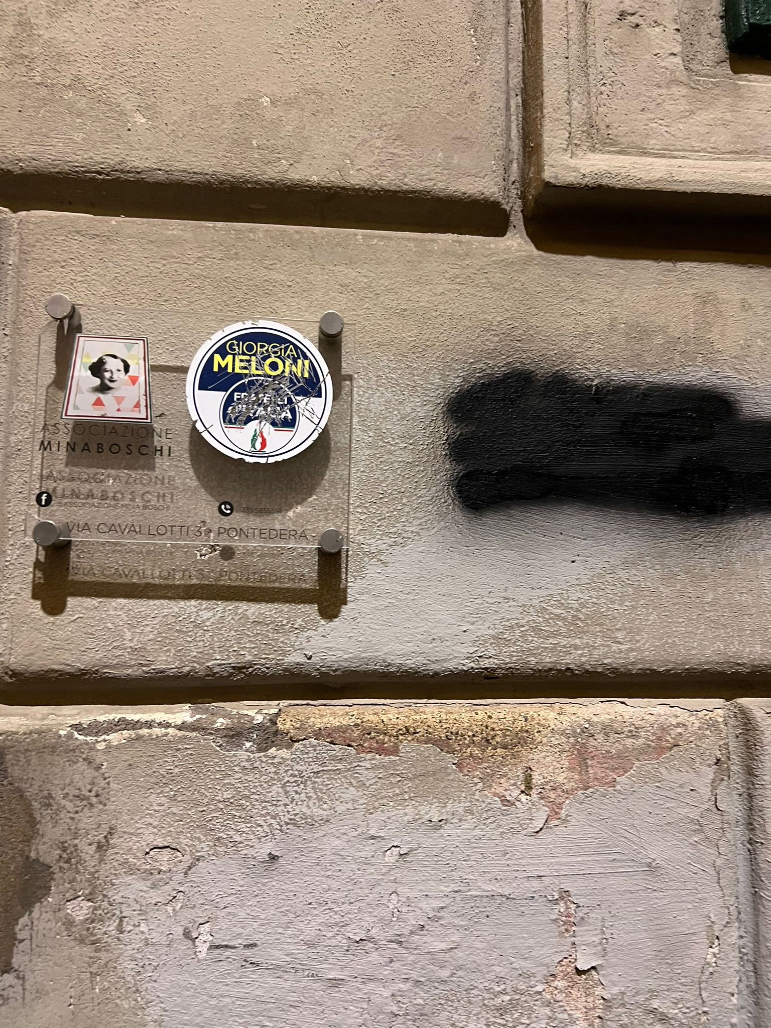 Pontedera, vandalizzata la targa del circolo FdI, Luperini: “Gesto vile, ma non ci fermerà”