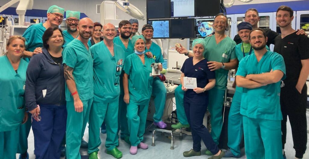 “Il nostro gruppo – sottolinea Marco De Carlo – si conferma ai vertici nazionali ed europei negli interventi “transcatetere”, mini-invasivi, sulle valvole cardiache. Ci ha fatto particolarmente piacere il complimento dell’inventore della valvola: “Avete un grande team, estremamente motivato, di cui abbiamo apprezzato la positività e la dedizione”. Nei prossimi mesi l’Emodinamica dell’Azienda ospedaliero-universitaria pisana sarà protagonista di uno studio clinico internazionale mirato a dimostrare i benefici di questo dispositivo”.