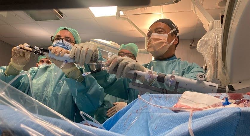 “Il nostro gruppo – sottolinea Marco De Carlo – si conferma ai vertici nazionali ed europei negli interventi “transcatetere”, mini-invasivi, sulle valvole cardiache. Ci ha fatto particolarmente piacere il complimento dell’inventore della valvola: “Avete un grande team, estremamente motivato, di cui abbiamo apprezzato la positività e la dedizione”. Nei prossimi mesi l’Emodinamica dell’Azienda ospedaliero-universitaria pisana sarà protagonista di uno studio clinico internazionale mirato a dimostrare i benefici di questo dispositivo”.