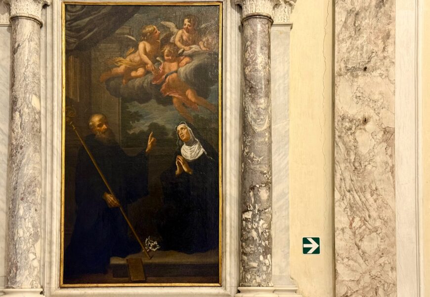 PISA – Un importante intervento di restauro ha restituito alla devozione dei fedeli, dei cittadini e dei turisti il dipinto a olio su tela raffigurante San Benedetto Abate e Santa Scolastica, realizzato a metà del Settecento. Il dipinto, che arricchisce uno degli altari minori della chiesa di Sant’Anna nel centro storico di Pisa, è stato recentemente restaurato e riportato nella sua collocazione originale. L’opera è stata presentata ufficialmente mercoledì 17 dicembre, durante la Messa di Natale celebrata in chiesa, un raro esempio di Barocco pisano, alla presenza di monsignor Giovanni Paolo Benotto, arcivescovo di Pisa.