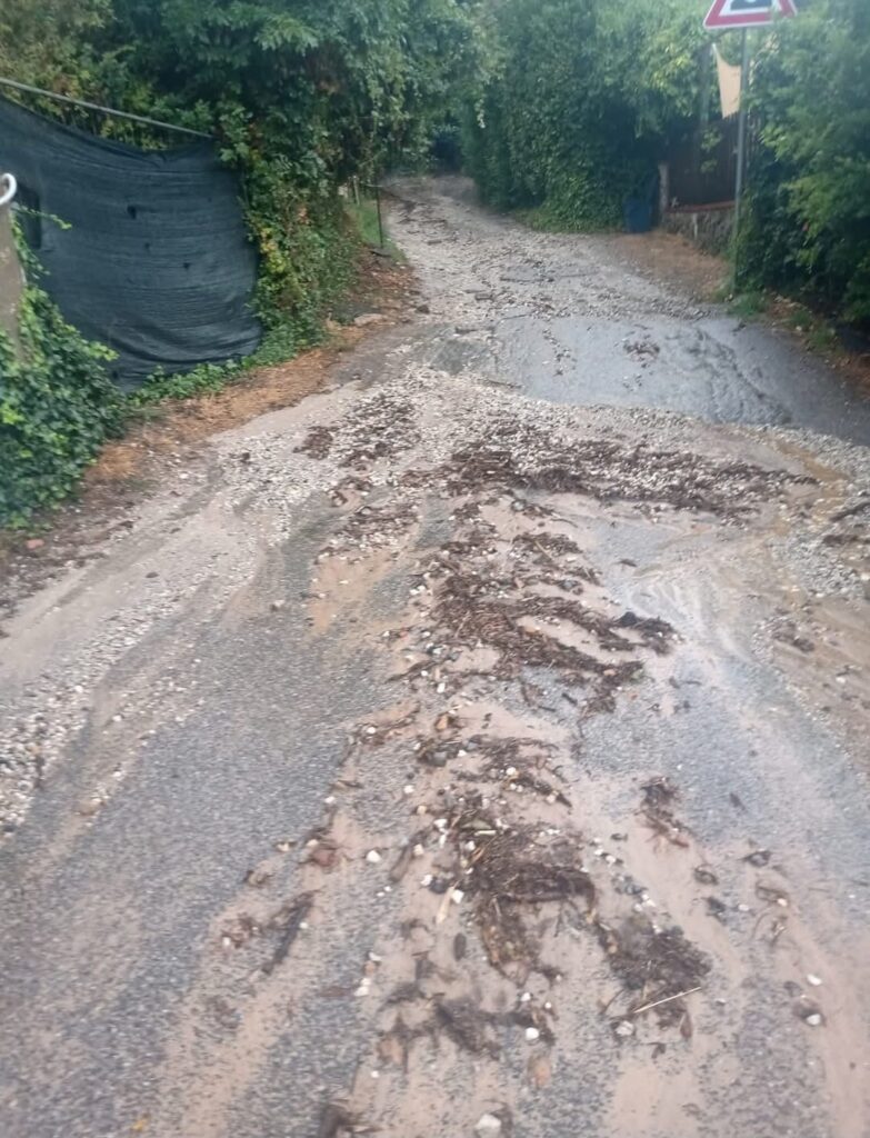 “A conferma della gravità dello stato attuale della strada, sono stati redatti alcuni verbali da parte della Polizia Municipale, che documentano le condizioni critiche e le conseguenze sulla percorribilità. L’assenza di una regimazione idraulica stabile e l’utilizzo di materiale inerte non idoneo stanno generando un degrado costante, con la formazione di profondi canali longitudinali che rendono il tratto impraticabile in molti punti. Le forti piogge del 2 agosto hanno nuovamente confermato la drammaticità della situazione, evidenziando l’insufficienza degli interventi tampone. Il materiale sciolto (fango, ghiaia e