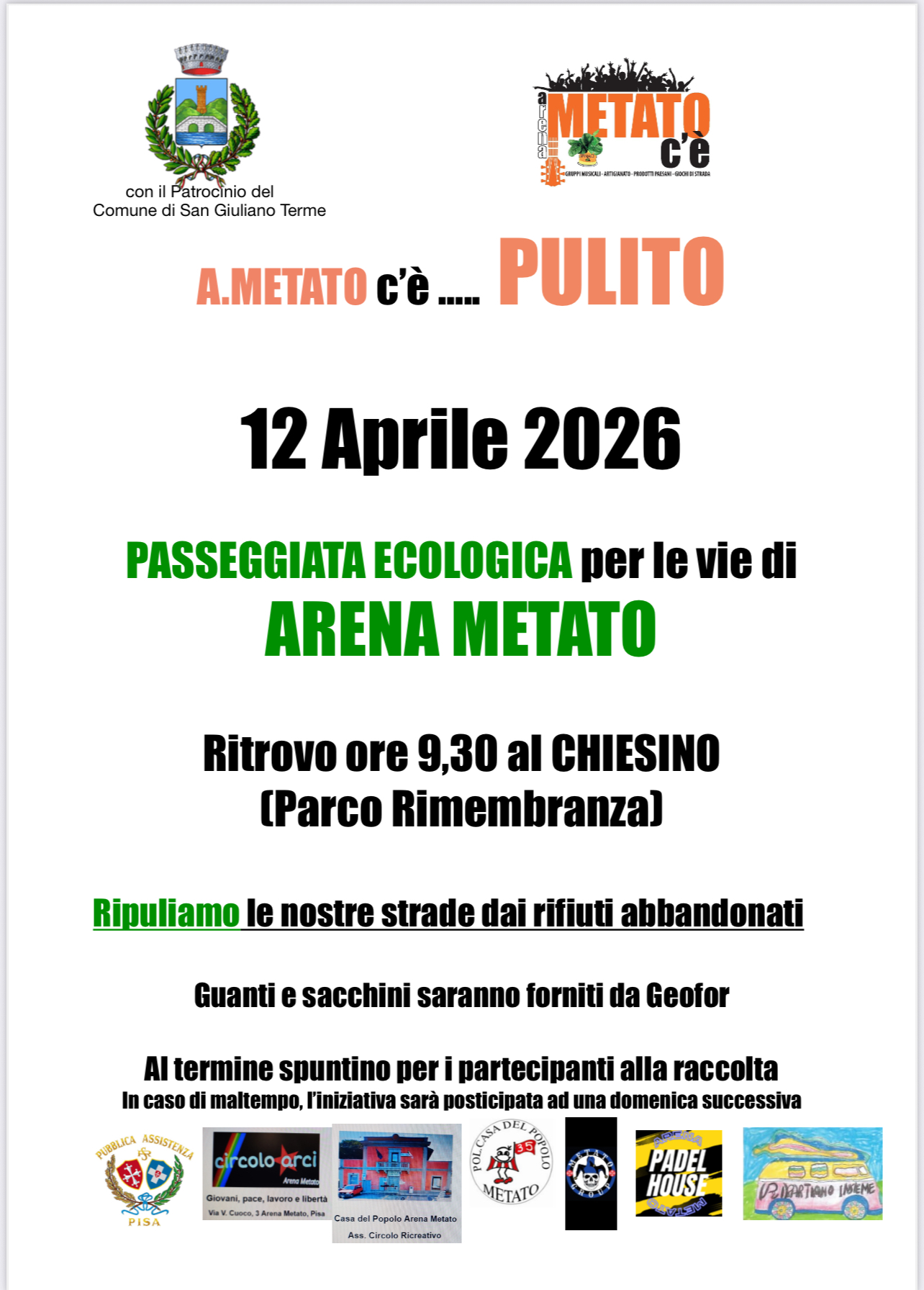 Domenica 12 Aprile “A Metato c’è…pulito”, passeggiata ecologica dedicata alla cura del territorio