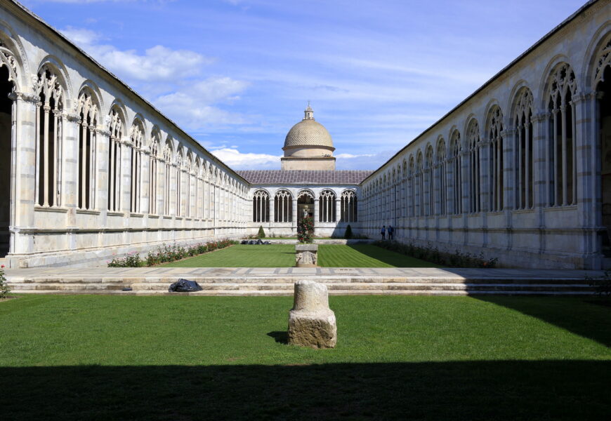 In Piazza dei Cavalieri, la “Torre del Conte Ugolino”, individuata all’interno del Palazzo dell’Orologio, sede della Biblioteca della Scuola. In Piazza del Duomo, gli affreschi di Buffalmacco nel Camposanto monumentale, in particolare il ritratto di Dante Alighieri tra le figure dipinte, e l’iscrizione ritrovata nel 1838 dalla quale emerge il nome di Bonanno come autore della Torre Pendente. Ancora in Piazza dei Miracoli, in Cattedrale, le vetrate medievali e il “Pulpito di Giovanni Pisano”, in vista del centenario della ricomposizione di quest’opera, smembrata tra fine Cinquecento e inizio del Seicento e riassemblata nella sua conformazione attuale nel 1926.