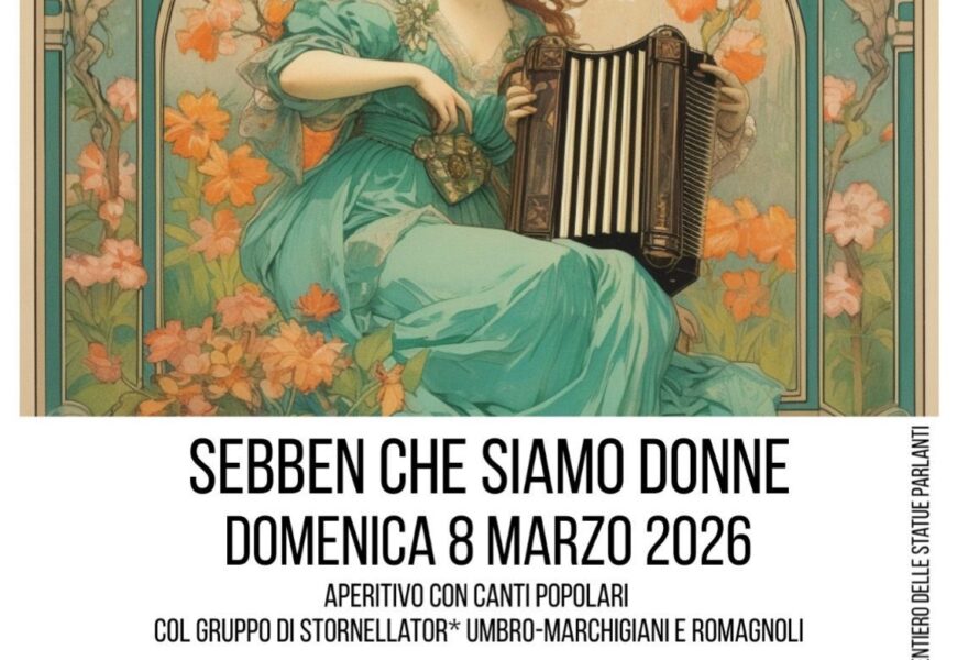 L’appuntamento è in programma sabato 8 marzo alle ore 18.30 nei locali del circolo. La serata prevede un aperitivo accompagnato da canti popolari della tradizione, eseguiti da un gruppo di stornellatori provenienti dalle aree umbro-marchigiana e romagnola.