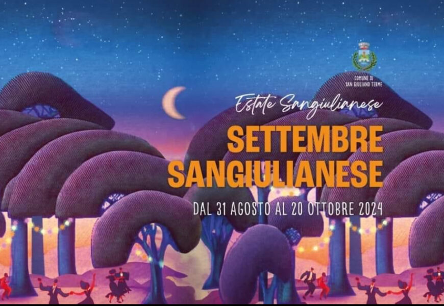 “Entriamo nell’ultima fase, per numero ed intensità di eventi, di un’Estate sangiulianese che ci ha regalato fino ad oggi belle emozioni e un cartellone variegato e di qualità, facendo vivere il centro di San Giuliano Terme con arte ed eventi – affermano il sindaco Matteo Cecchelli e l’assessora alla Cultura Angela Pisano –. Con il Settembre sangiulianese ampliamo l’offerta di iniziative con un ampio programma distribuito in più luoghi di socialità del nostro Comune, negli spazi rigenerati e quelli che da sempre valorizziamo, con la voglia di replicare il successo degli eventi fino ad oggi realizzati”.