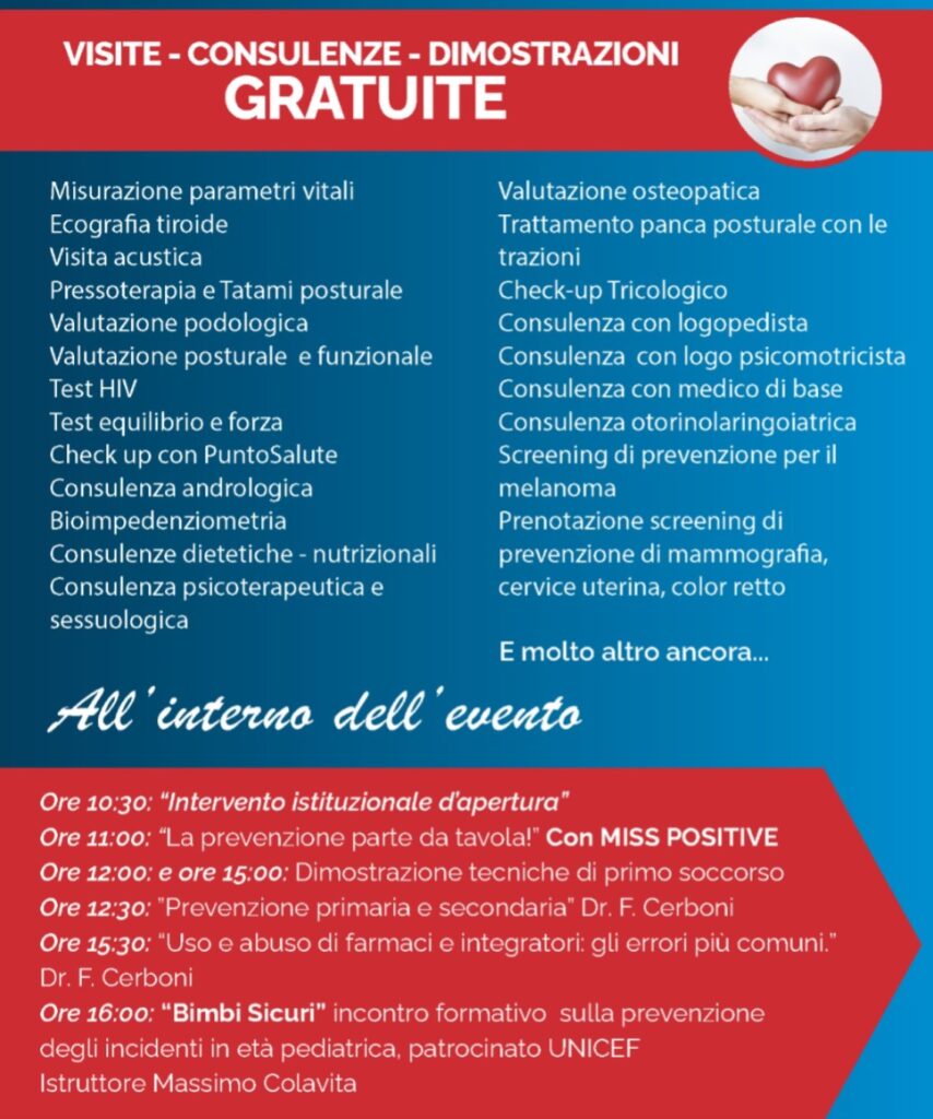 L’evento è gratuito e aperto a tutti! Non perdere questa opportunità, la prevenzione è il primo passo per la tua salute.